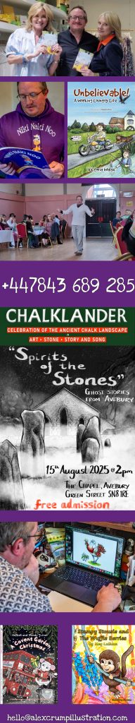 Hello, I’m Alex. A full time freelance illustrator/artist, writer and storyteller based near Swindon. I live with my young family in the Wiltshire countryside along with the soppiest ginger furball cat and a fabulous pair of Pugs.